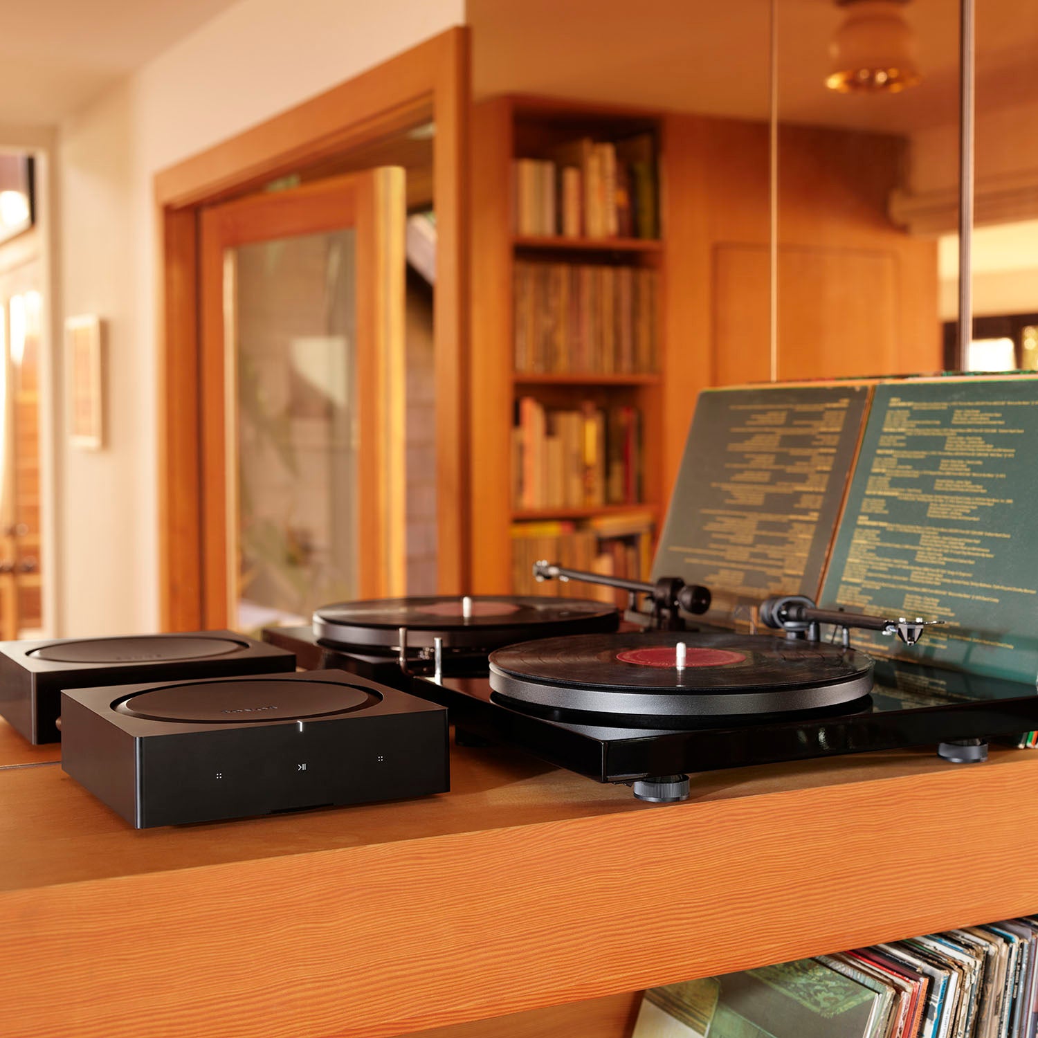 O Amp oferece 125 watts por canal, permitindo alimentar alto-falantes externos e ouvir em volumes mais altos com som claro e sem distorção. Conecte seus alto-falantes passivos, TV, CD player e toca-discos, e adicione alto-falantes Sonos para uma experiência de som em vários ambientes.