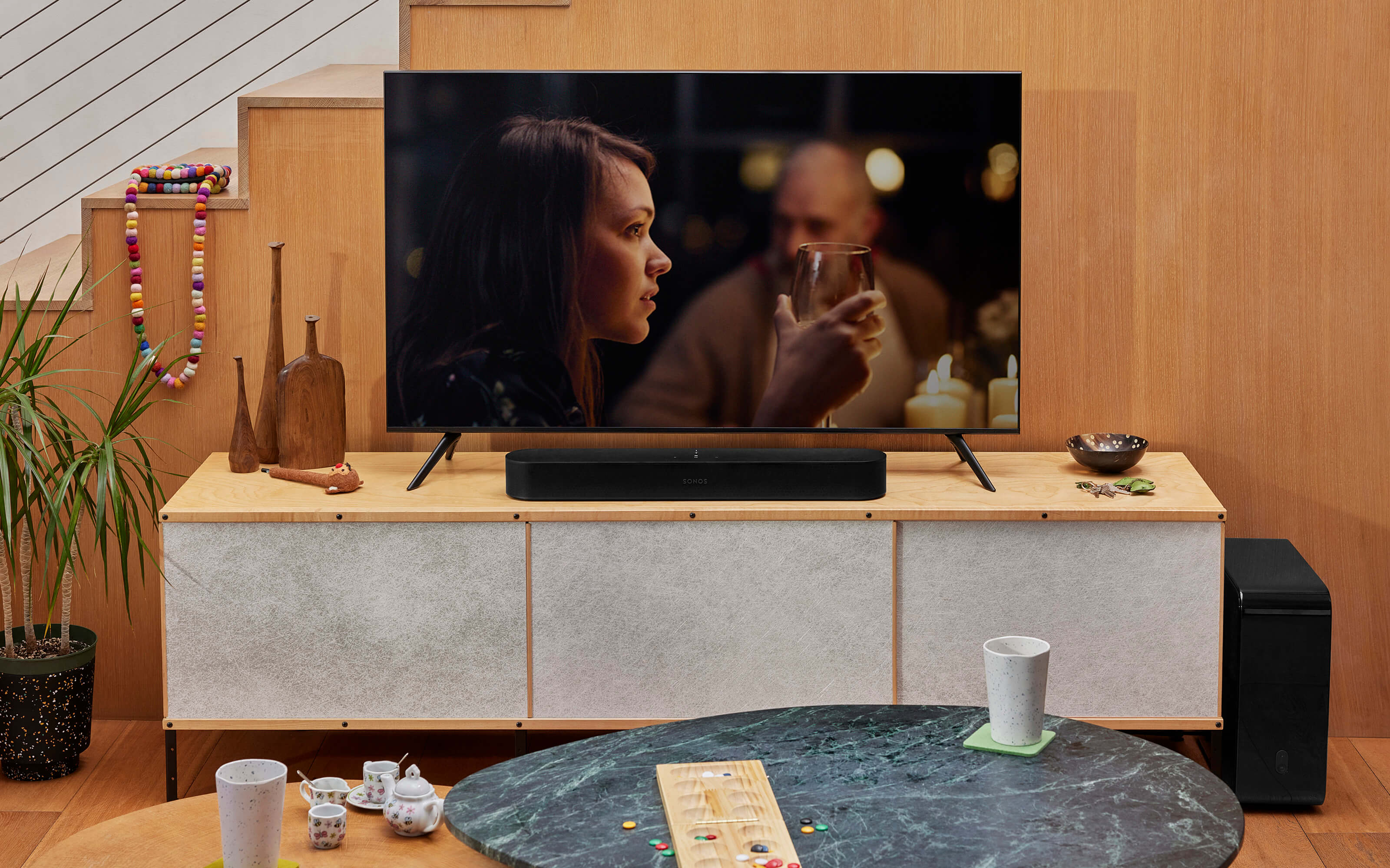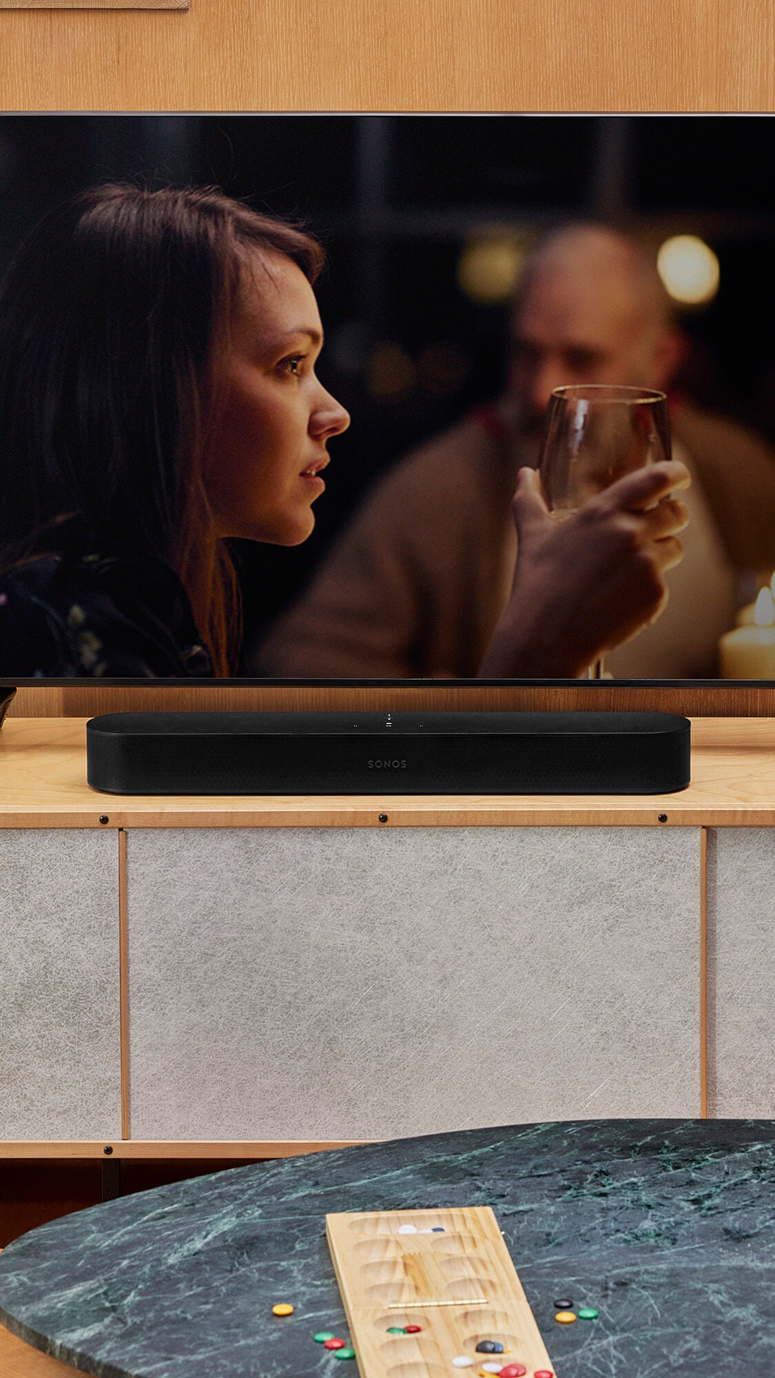 Ative o aprimoramento de fala no Sonos App para obter uma nitidez ainda maior quando os personagens sussurram ou quando a ação se intensifica.