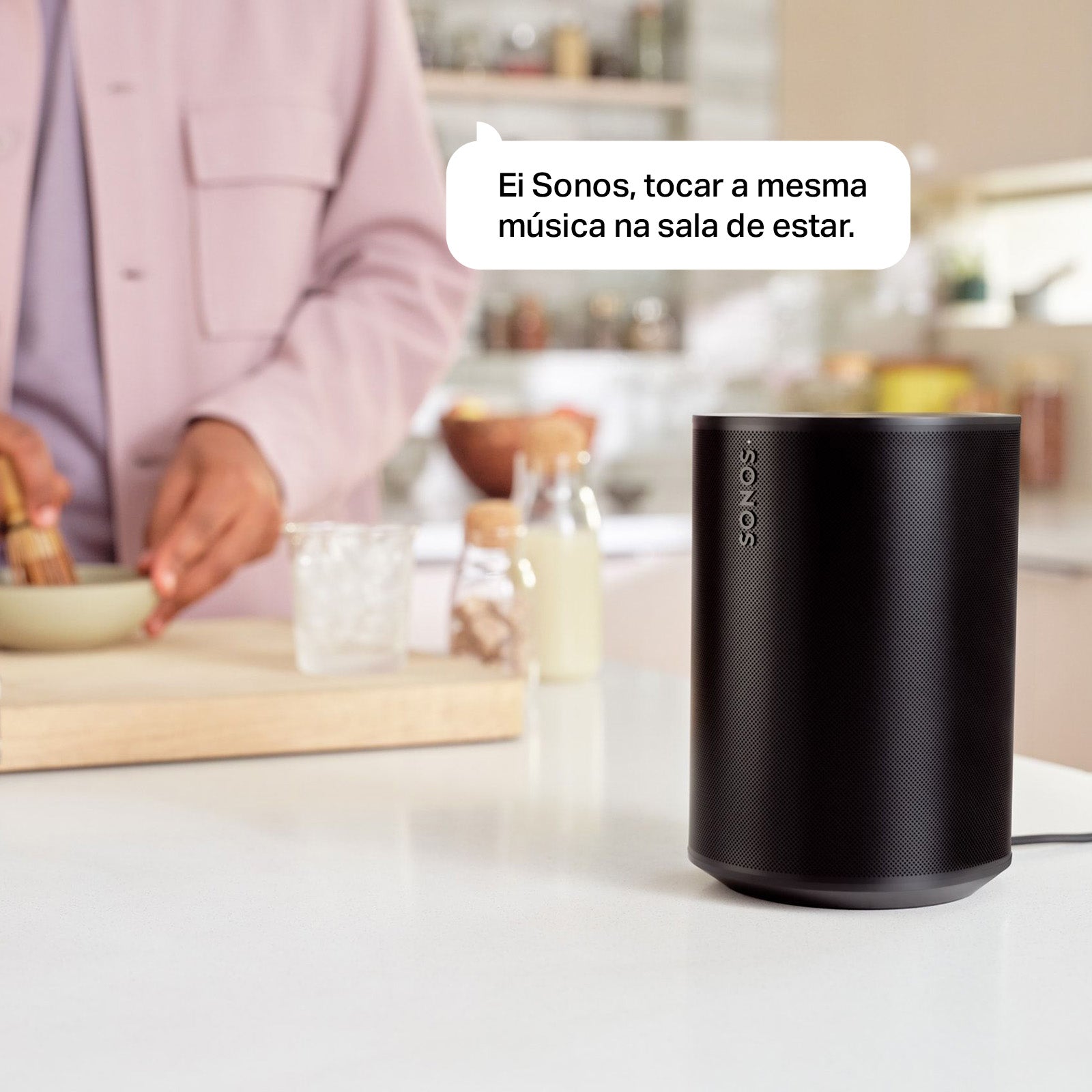 Do unboxing a instalação em minutos. Basta conectar o cabo de energia, conectar seu telefone ao Wi-Fi e abrir o aplicativo Sonos.