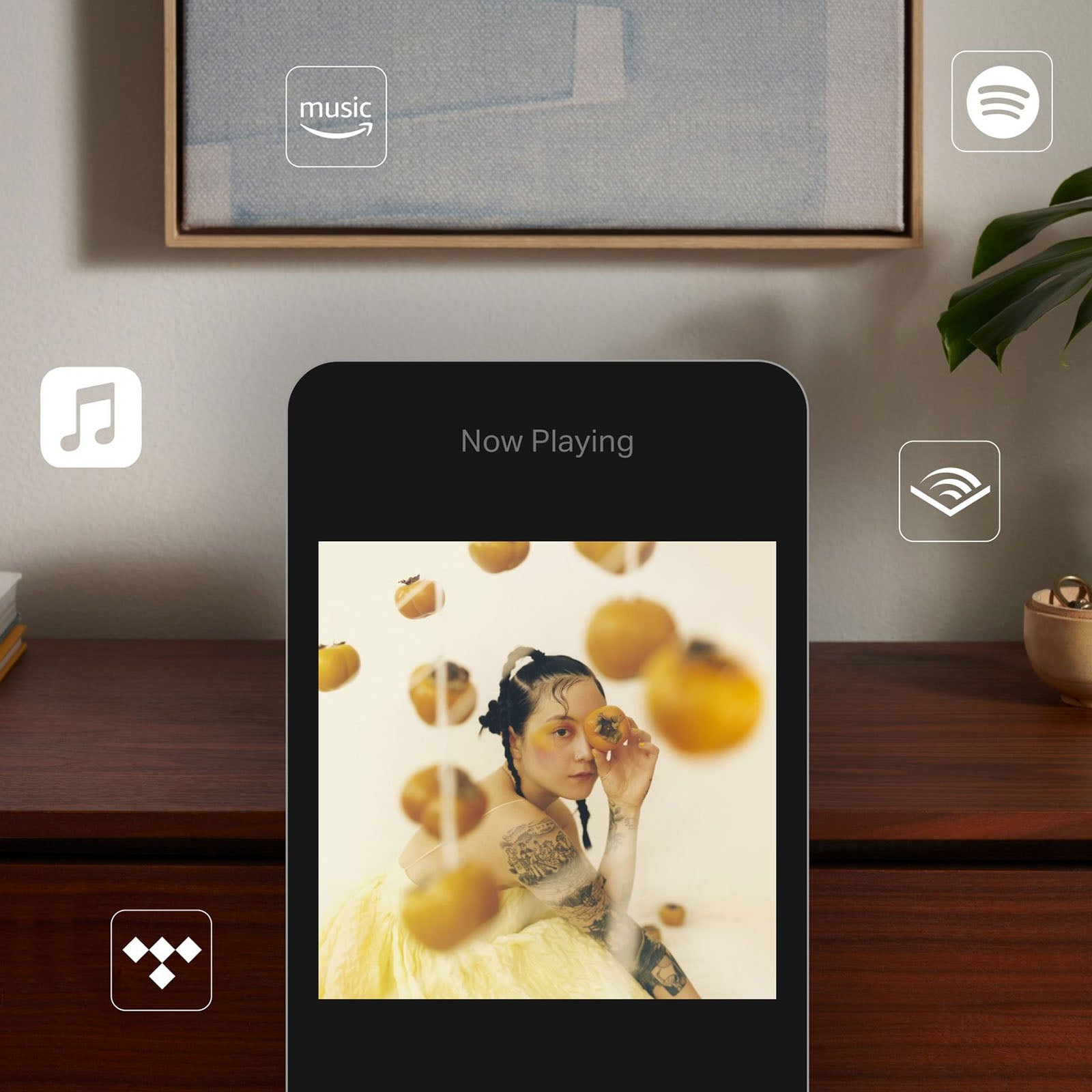 Controle suas músicas diretamente de apps como Pandora, Spotify e TIDAL.
