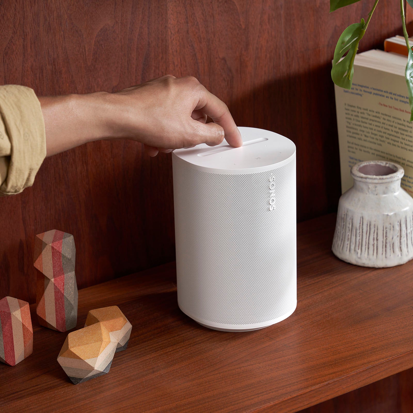 Os controles táteis intuitivos permitem controlar facilmente, sem tela. Basta tocar ou deslizar para reproduzir, pausar, ajustar o volume e agrupar seus alto-falantes Sonos.