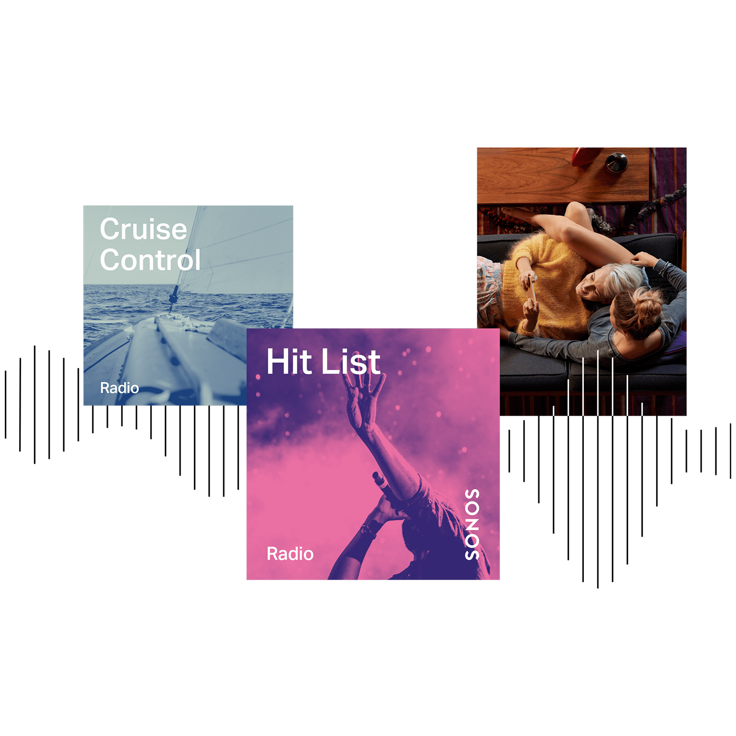 Descubra músicas gratuitas, conteúdo original e milhares de estações de rádio ao vivo do mundo inteiro através do Sonos Radio, disponível no aplicativo da Sonos.