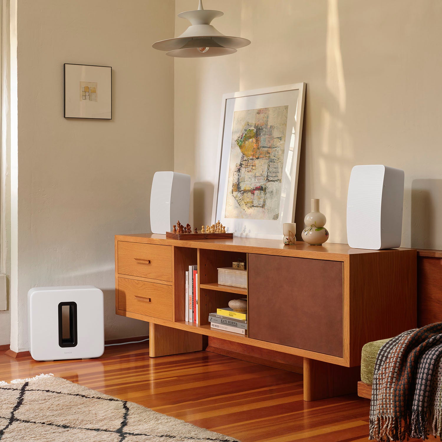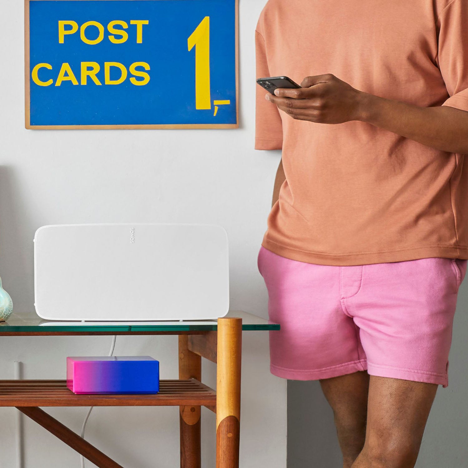 Cuidadosamente projetado e sintonizado com maestria, o Sonos Five preenche até os maiores ambientes com agudos precisos e graves impactantes.
