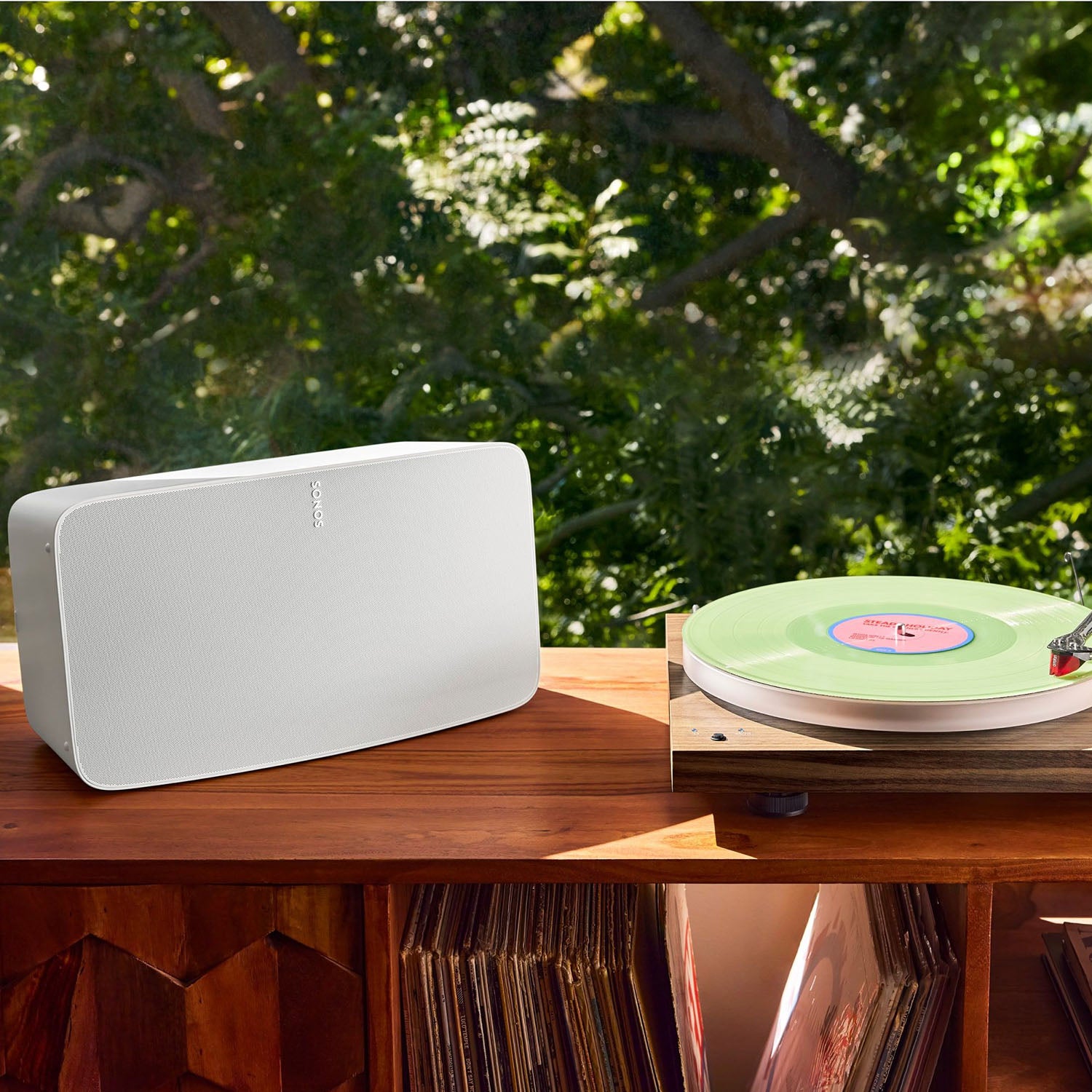 Use um cabo auxiliar para conectar seu toca-discos, CD player ou computador à entrada de áudio do Sonos Five. Envie o som de seu aplicativo de streaming para todos os alto-falantes Sonos da sua casa, proporcionando uma experiência única de audição multiroom.