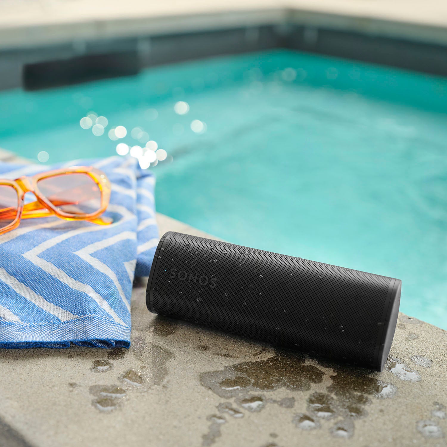 Leve o som da Sonos para qualquer lugar: quintal, praia ou trilha. O Roam 2 é durável, leve, à prova d'água e poeira (IP67), perfeito para uso ao ar livre.
