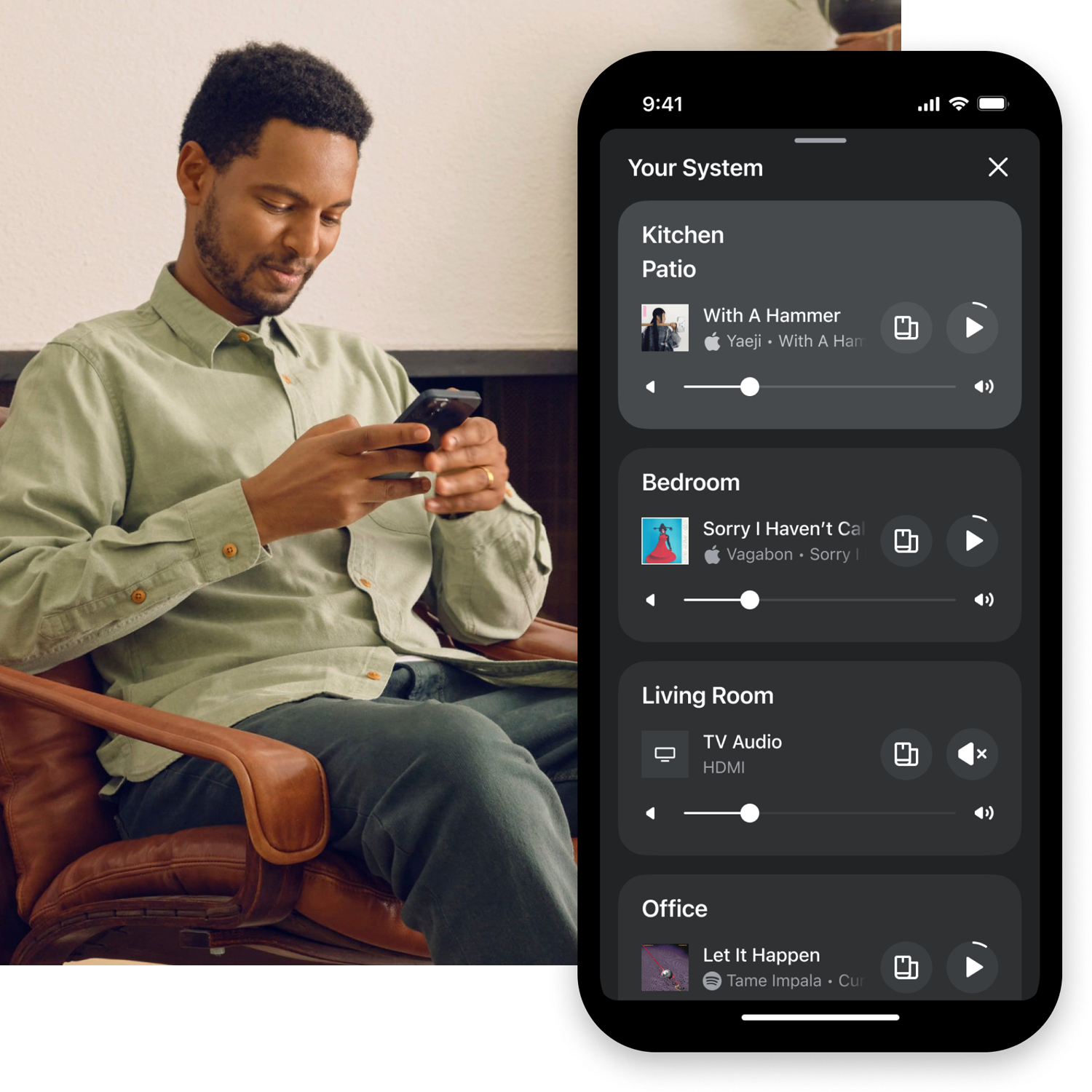 O aplicativo da Sonos reúne todo o seu conteúdo e configurações em um só lugar para controle fácil em qualquer ambiente.