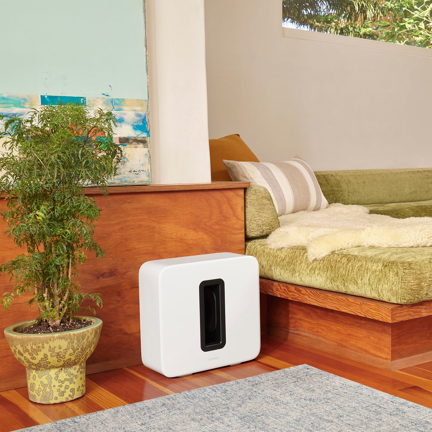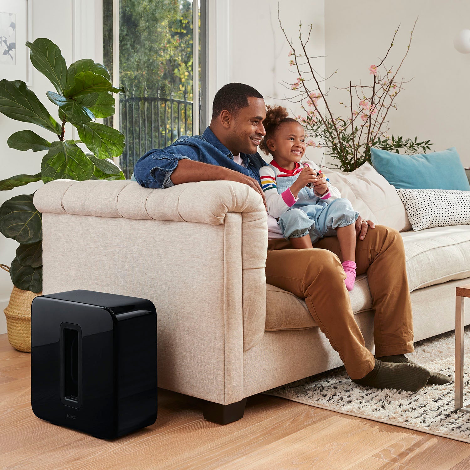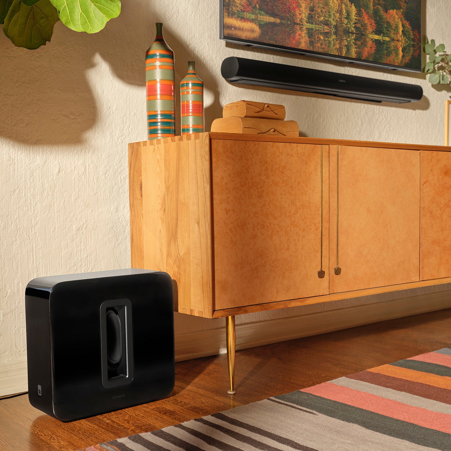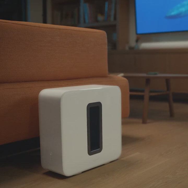 O Sub assume as frequências mais baixas, permitindo que os alto-falantes emparelhados se concentrem nas frequências médias e altas, proporcionando uma experiência sonora mais rica e poderosa em todas as direções.