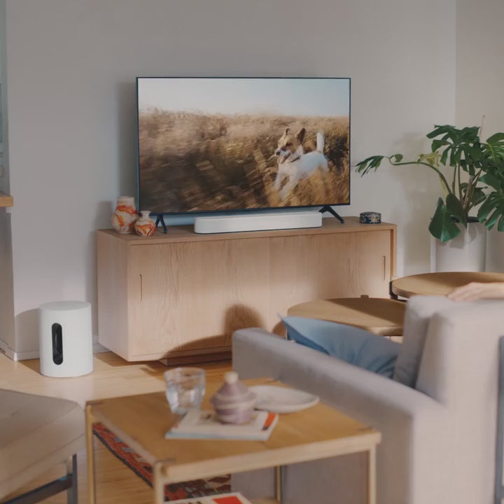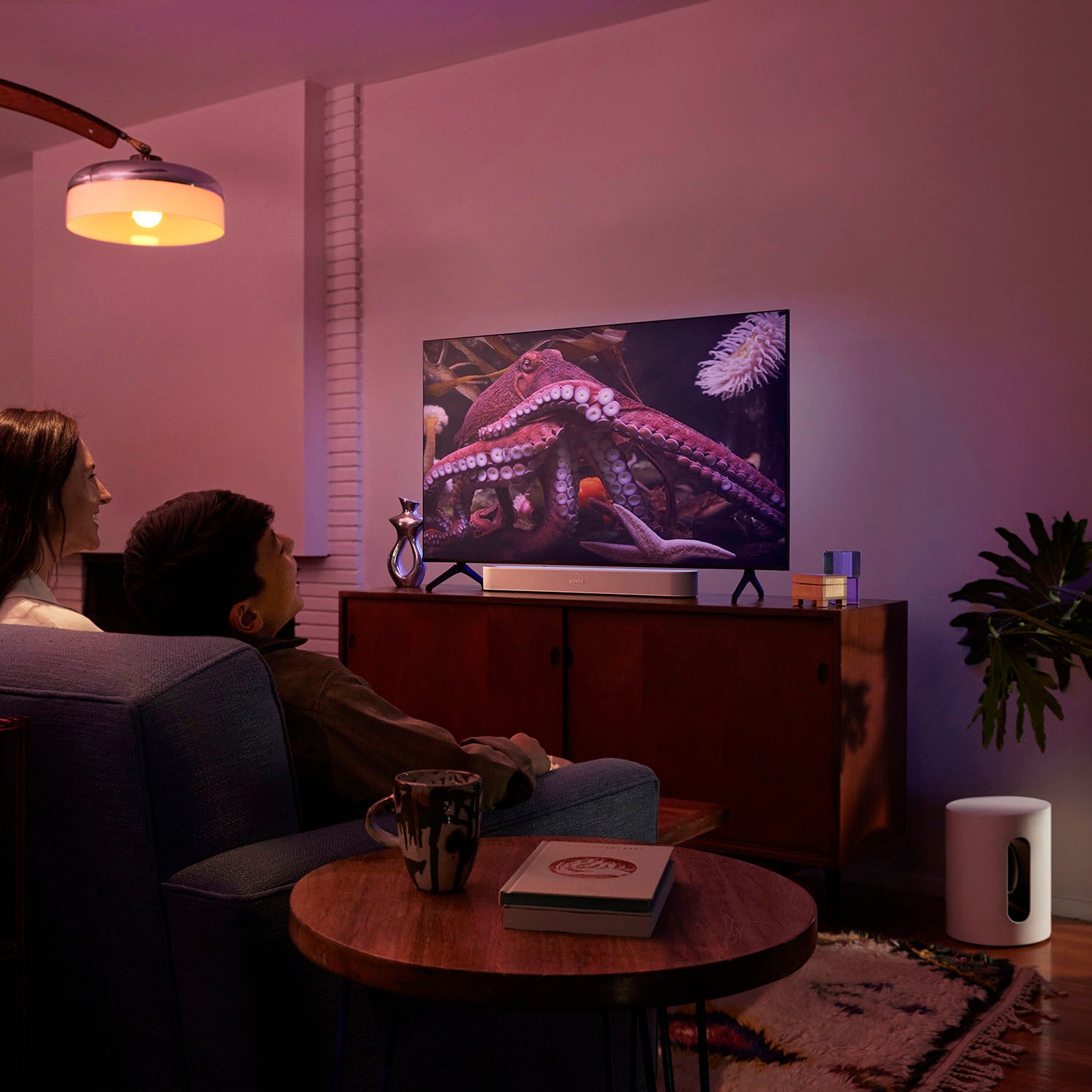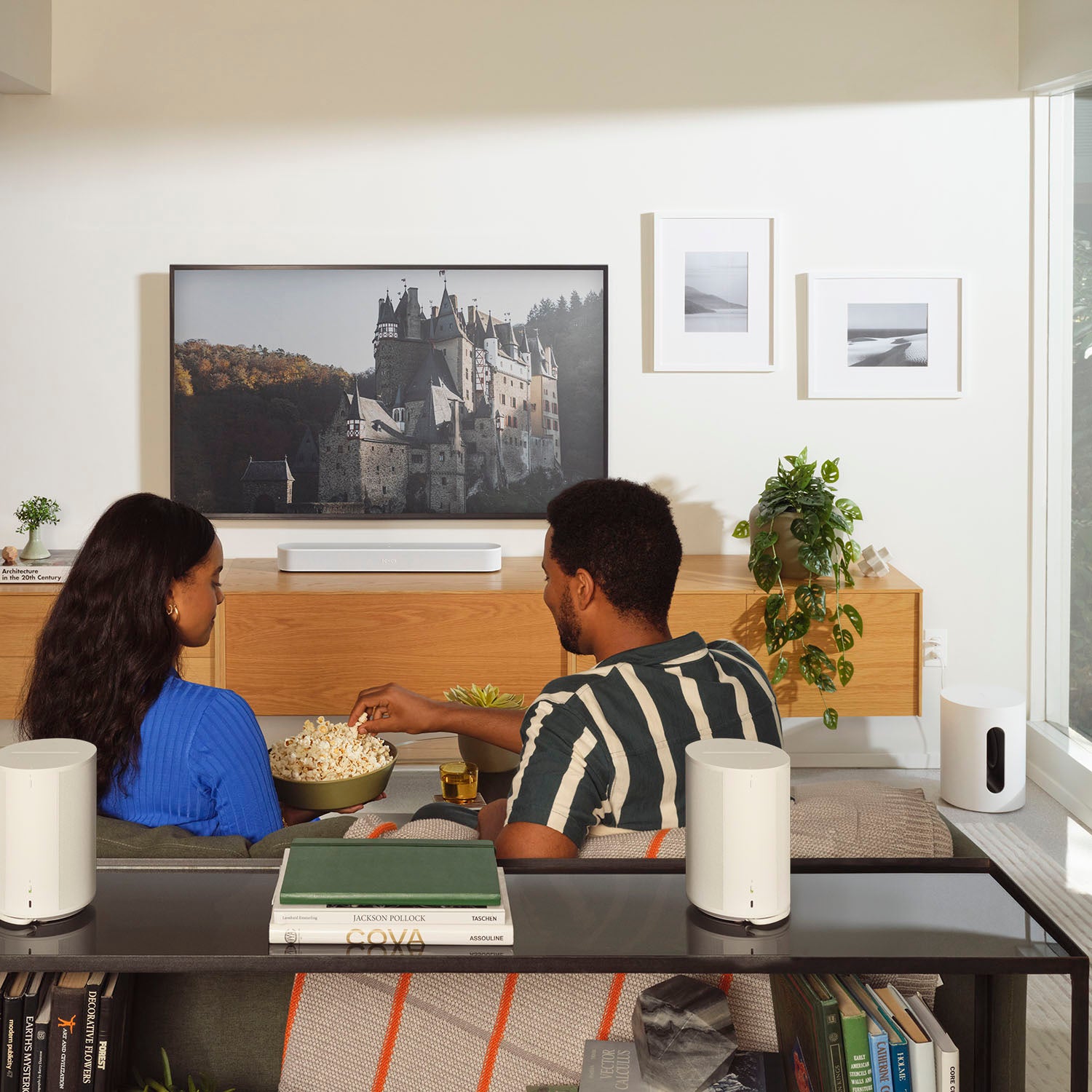 Aprimore sua experiência de entretenimento ao combinar o Sub Mini com a Beam ou a Ray. A conexão Wi-Fi de 5 GHz aumenta a velocidade de transmissão de áudio, proporcionando som de alta qualidade sincronizado com sua TV.