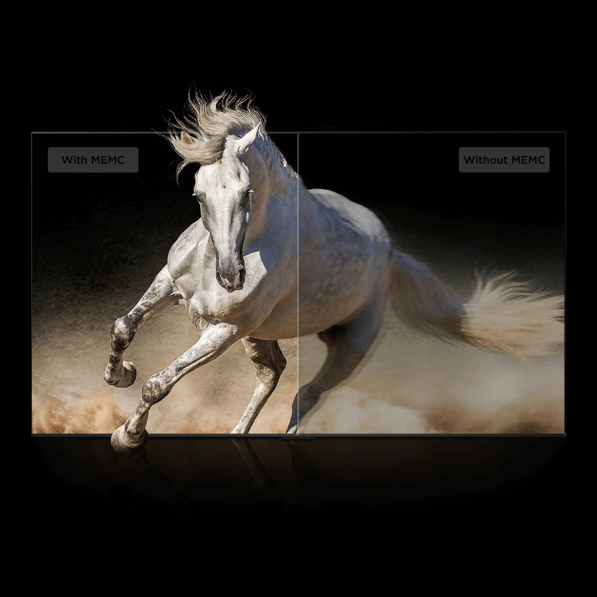 O algoritmo MEMC reduz o desfoque da exibição de movimento, deduz a quebra de quadros da imagem e garante uma cena suave mesmo em ação de movimentos rápidos.
